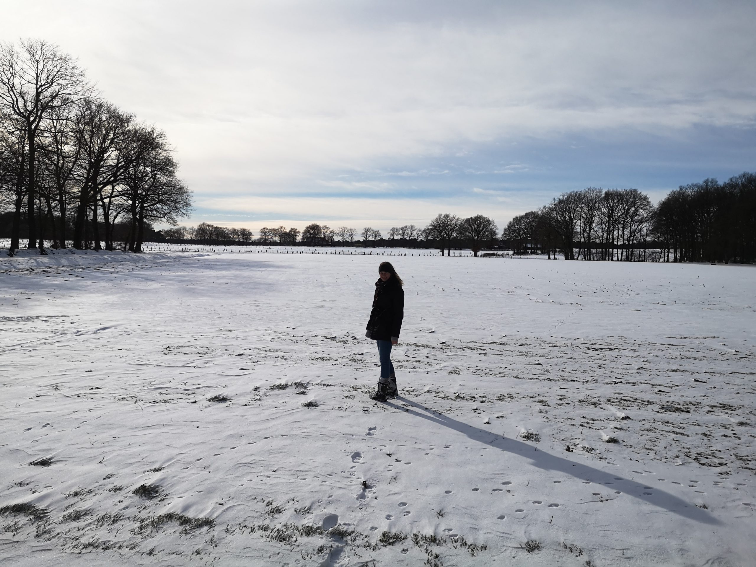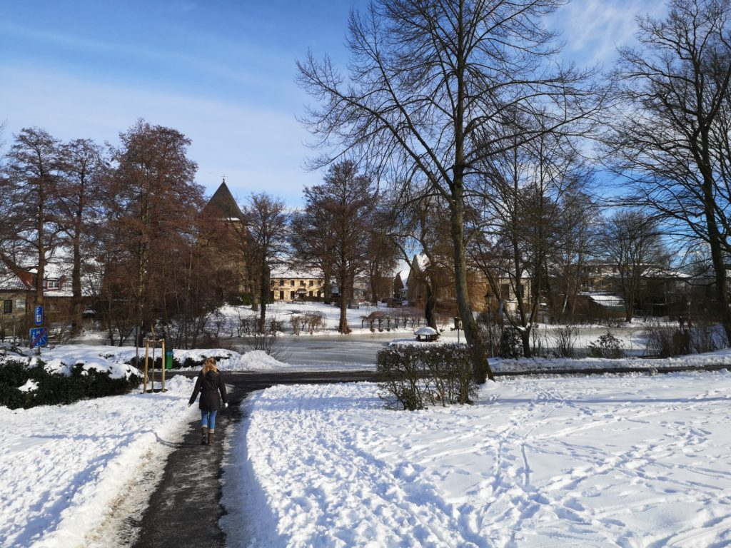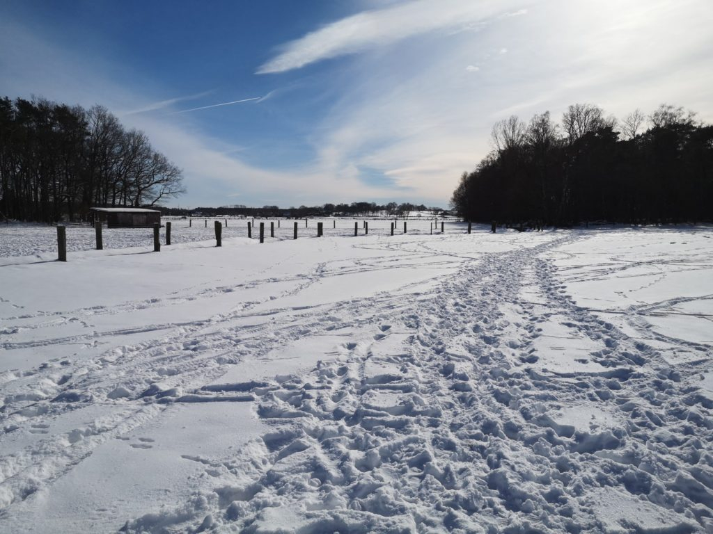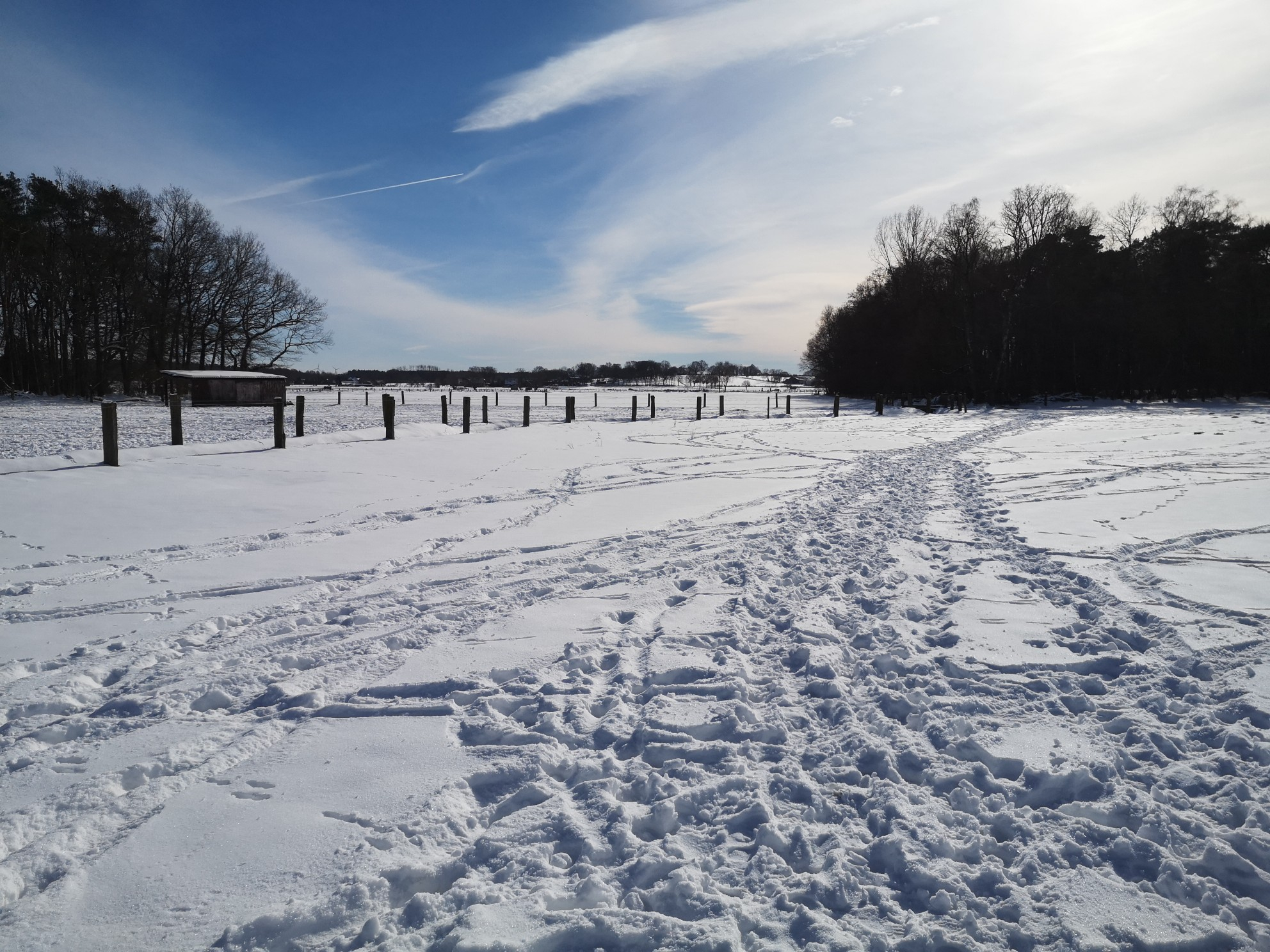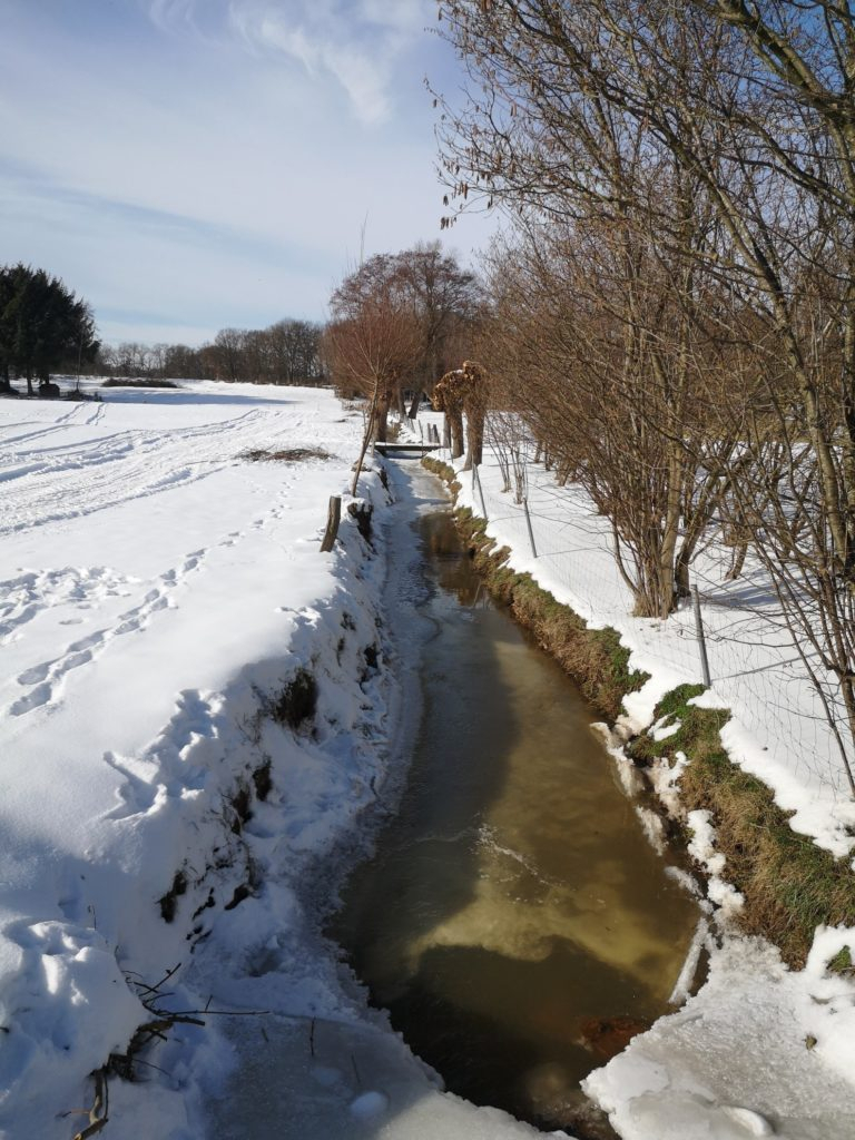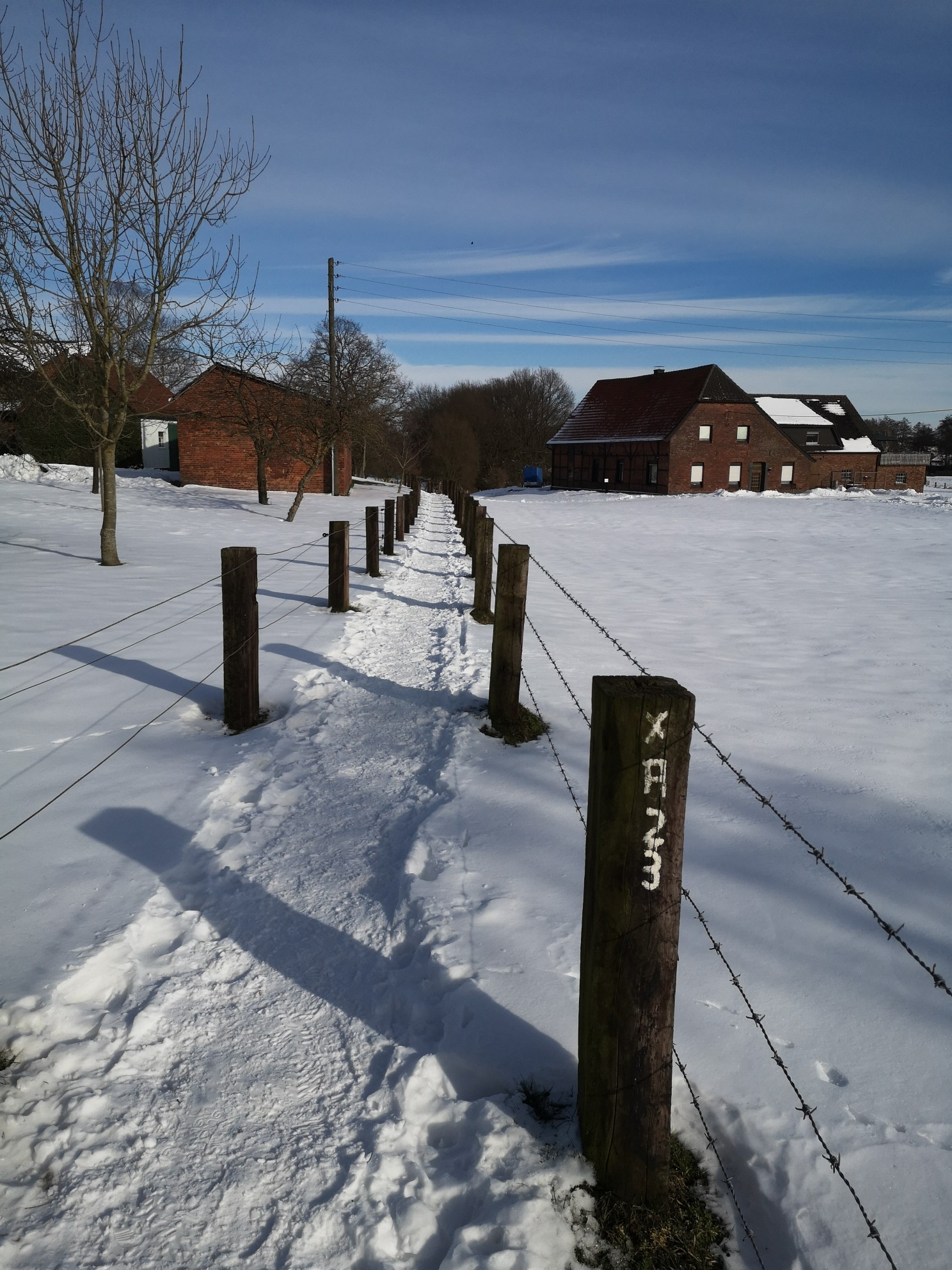 Am Sonntag, den 14.02.2021, haben Laura und ich einen Spaziergang in Gahlen gemacht. Wir sind auf die Tour gekommen, da der Kreis Wesel eine neue Broschüre mit Wandertouren herausgegeben hat und diese auch eine Tour von Gahlen enthält. Ausgangspunkt ist der große Pakplatz am Mühlenteich (Parkplatz Törkentreck). Von da aus geht es ein kleines Stück mitten durch Gahlen und anschließend geht es durch die Landschaft, vorbei an Feldern und Wiesen. An dem Tag lag noch eine Menge Schnee und auch der Mühlenteich war noch zugefroren, was auf den Bildern zu sehen ist.