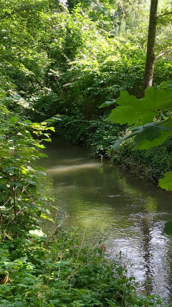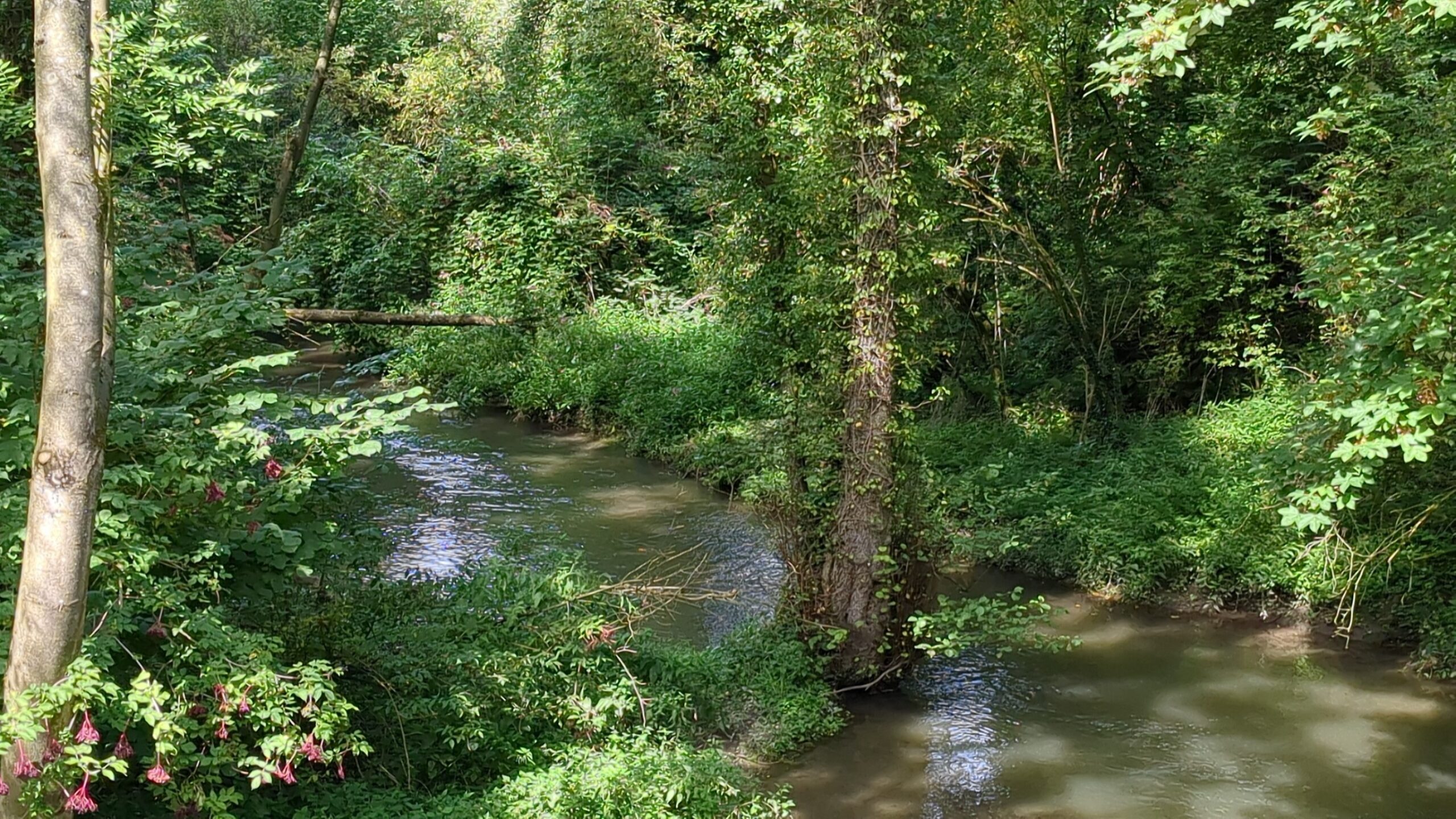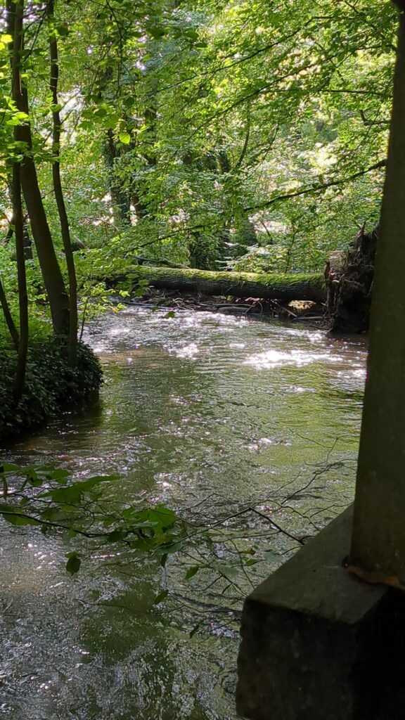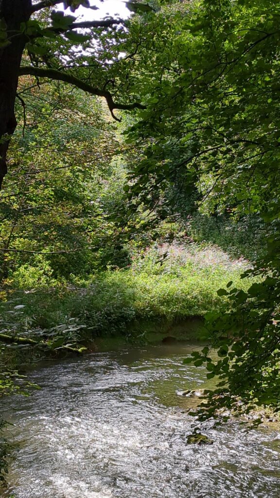 Einen großen Teil der Strecke läuft man an der Düssel (Bach) entlang.