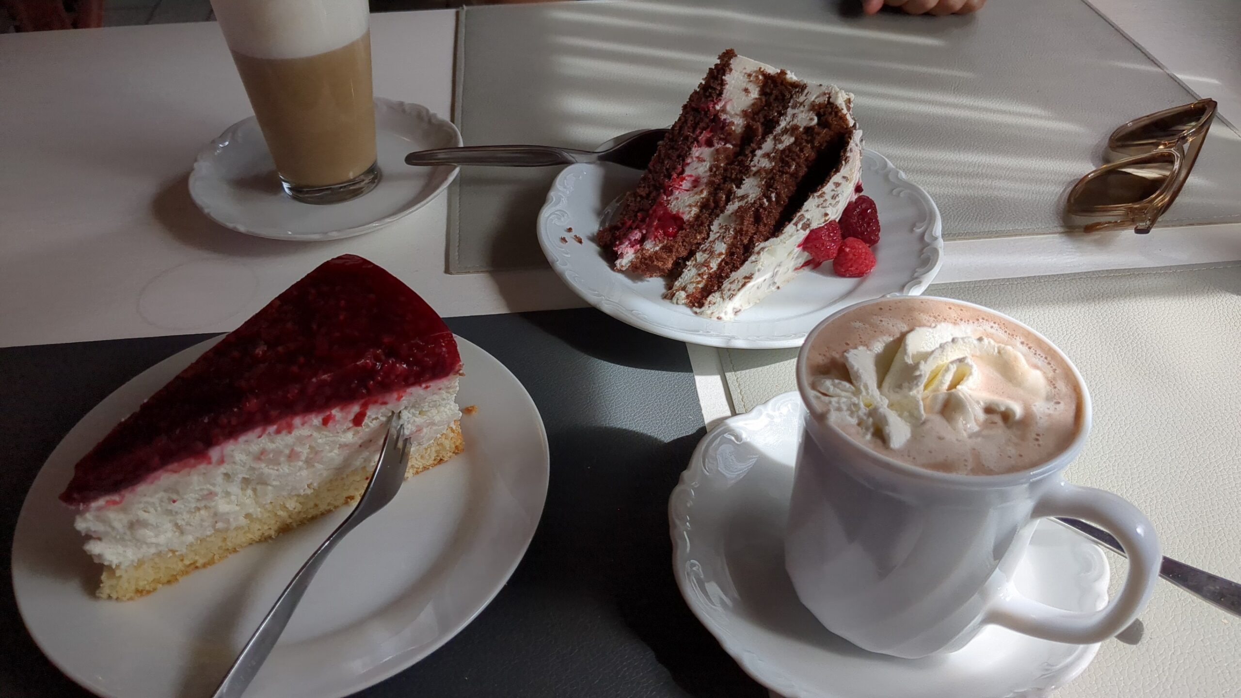 Der Ort Gruiten hat einen historischen Ortskern mit alten Fachwerkhäusern. Ein Biergarten und ein Café laden zum verweilen ein (siehe Foto vom Kuchen).