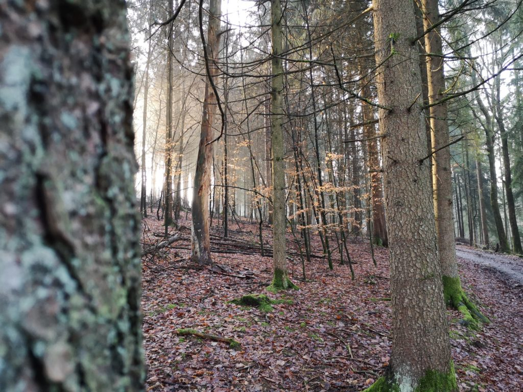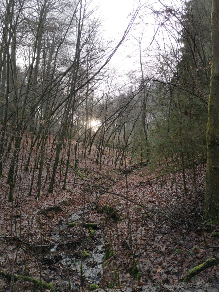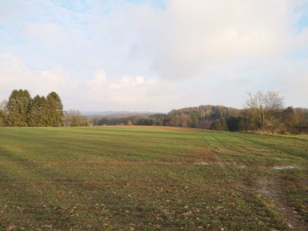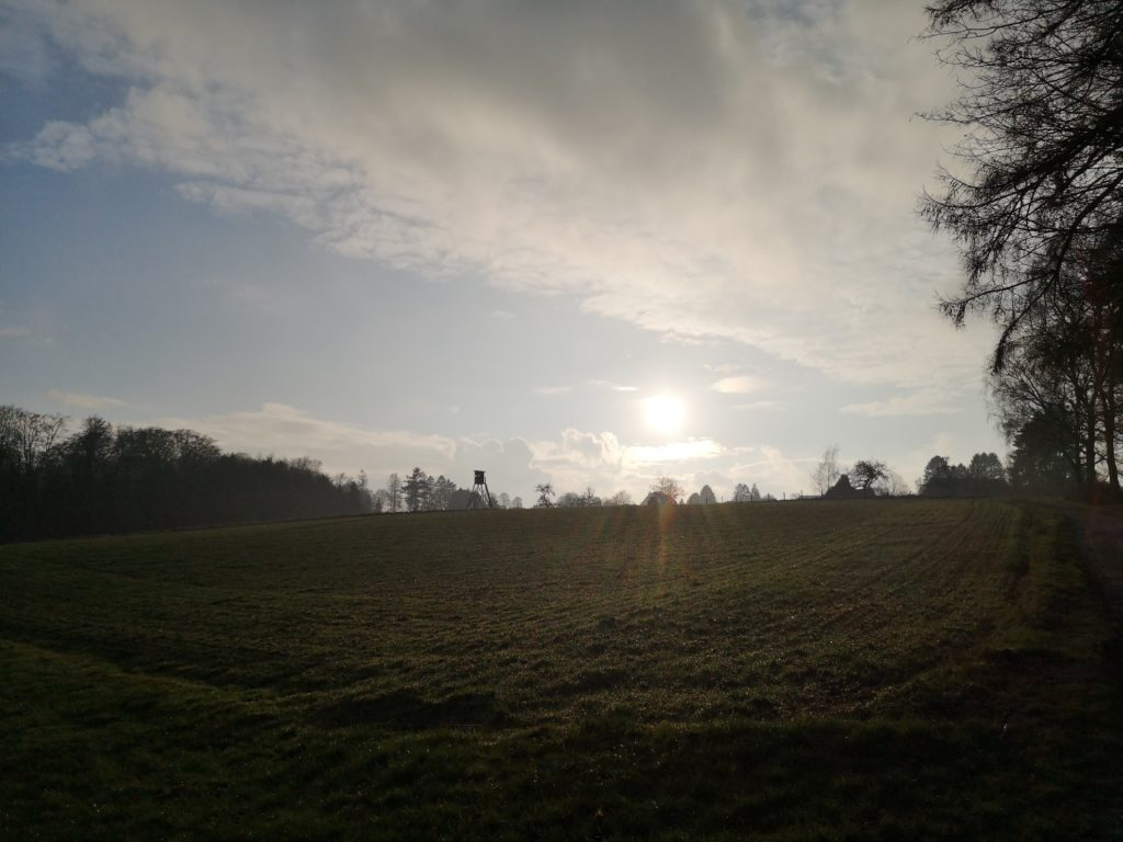 Der zweite Teil der Wanderung führte durch einen Wald. Durch die Sonnenstrahlen wirkte dieser besonders friedlich. Zum Schluss führte uns der Weg an einigen Wiesen vorbei. Wir konnten einen Kolkraben sehen und hören! Die Tour ist zu empfehlen: gerade bei schönem Wetter kann man die weite Landschaft und den Ausblick genießen.